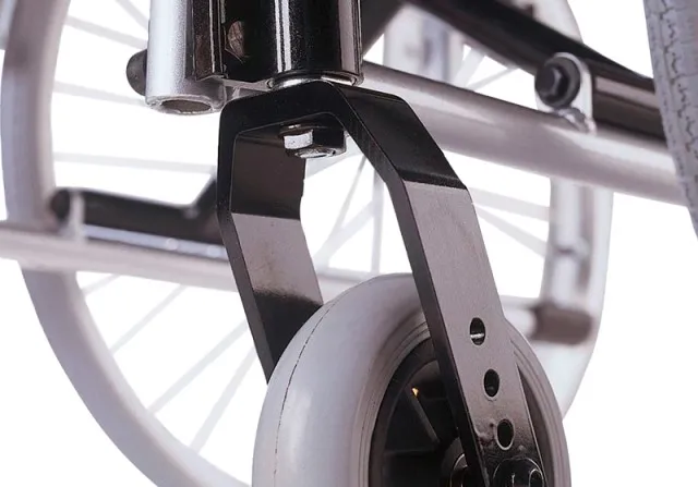 Облегченная инвалидная коляска для индивидуальных потребностей. Оптимальный комфорт за счет настройки высоты сиденья, индивидуальной установки подлокотников и угла положения опор для стоп, регулировки упругости спинки с люмбальным валиком.