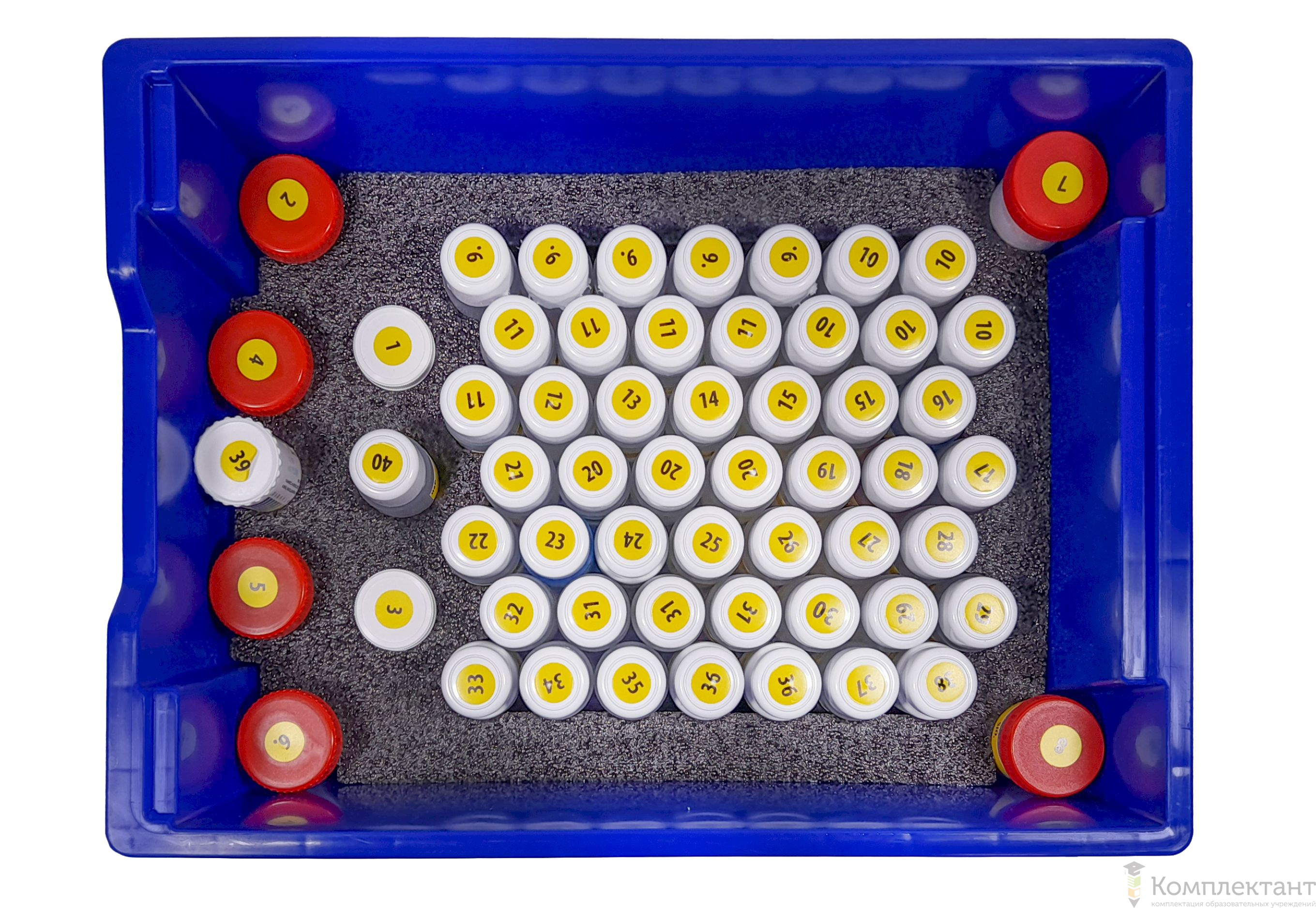 Набор реактивов укомплектован в пластиковую систему хранения с прозрачной пластиковой крышкой на защелках для обеспечения наблюдения за содержимым.