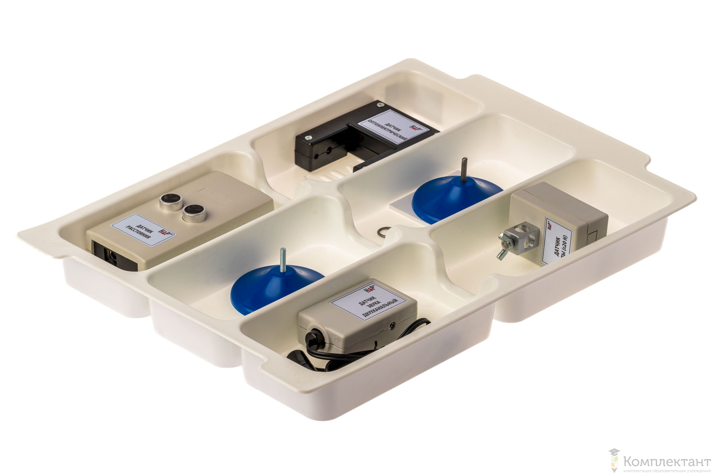 Цифровая лаборатория по физике представляет собой набор элементов и датчиков, на базе которых поочередно собираются установки для выполнения работ по изучению законов механики, молекулярной физики, электричества и оптики.